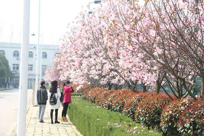 点点薄雪刚刚化去,三月朦胧烟云便如纱般悄覆人间。天边东风细,人间柳丝长,漫漫新绿渐染校园风光。莫道春晖无寻处,东风轻柔,繁衫初减,且携一支歌,撞满怀风,于这盎然兴味中,在合肥学院且行且欣赏……