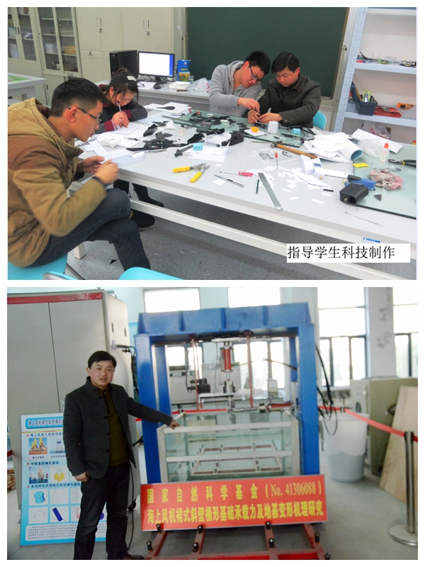 对于采访,刘金龙显得有些拘谨,然而当聊到有关科研工作时,他立刻打开了话匣子,向我们介绍了他最新的科研项目:海上风机分段斜壁桶形基础的承载力研究。风力发电是近年来我国海洋事业发展的一项重点,然而风机对基础的稳定性要求很高,工程界一直在寻求提高风机基础承载力特别是水平承载力的措施。针对传统海上风机桶形基础,刘金龙提出了多种改进方案,“其实,算不上发明,只能算是在现有技术上的创新吧,我考虑到传统桶形基础的侧壁主要为竖直面,可不可以将它改为斜面呢?并且还可以分段采用不同的倾角,即上半部分与下半部分采用不同的斜面,这样可变换出一系列的新构型。”刘金龙十分兴奋地描述着自己的想法,果然很快基于理论分析的多种改造方案出炉,相关成果已发表并被EI收录。